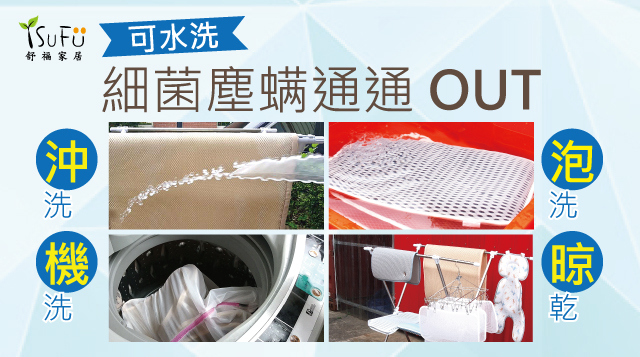 - 水洗快乾,不滋生細菌塵蹣、不受潮發霉
